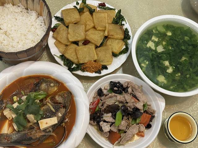 晚餐吃白族特色菜,老板在这边开了九年了,味道不错,这个炒肉好下饭,酸辣鱼是特色菜,主要是酸咸辣的味道