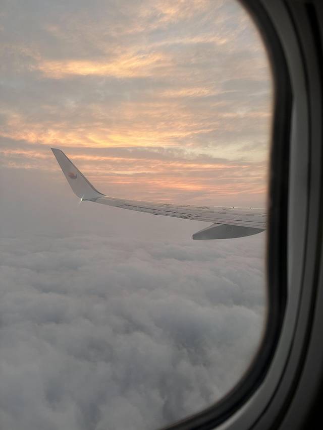 第一天,赶早上第一班六点的飞机,可以遇见早晨的第一缕光;