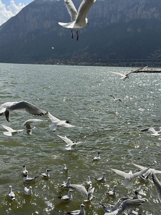 滇池边栖息着一群西伯利亚海鸥,记得带上一块面包去那边喂海鸥哦,在这边每秒都是风景大片。