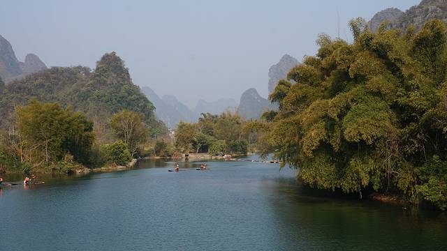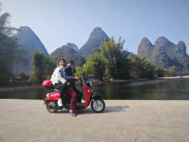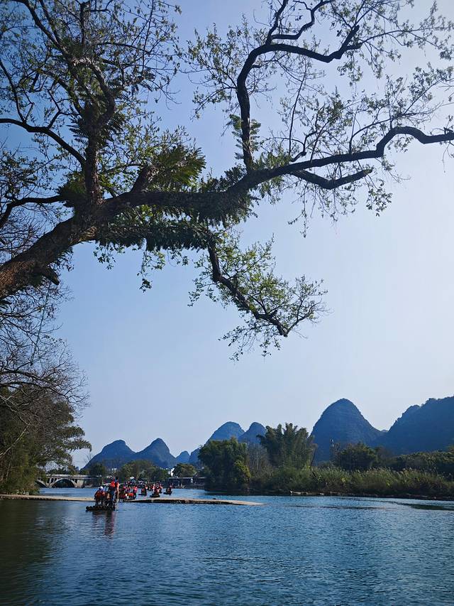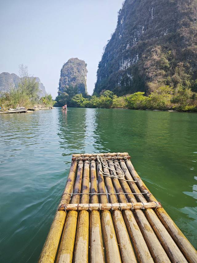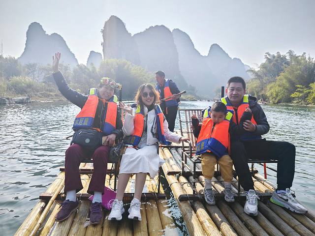 漂流整个下来很长,鉴于有娃,选择从水厄底码头到工农桥段漂流,大约半小时。来阳朔一定要体验一下人工撑竹筏,一路水声潺潺,外加船夫撑船的竹竿声铛铛响,真的很原始,内心安静而美好。老妈赞不绝口。