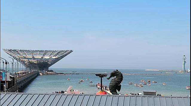 其实此行真正目的地就是盖州北海,之前一直是小众的滨海度假地。解封后的五一,小众已不再小众! 这里仍处于半开发状态,周边没有很浓重的商业味道。亚特兰蒂斯水上乐园夏天开放。可能也是YQ原因,百废待兴的氛围。 但海边公园真的非常美,欣赏海上落日的绝佳胜地。 宁静柔美非常出片。有部分白蓝建筑使这里有被称为东北的小圣托里尼,公园里面有高空玻璃栈桥,有晃动的锁桥可以探险。 平时不收费,节假日30元每个人,学生老人半价,不过有效期按次不是按天,进去出来,再想进去还是一样买票。 早上7点之前,晚上5点之后不需门票,酒店五一准备了烟花小惊喜,回忆感满满。