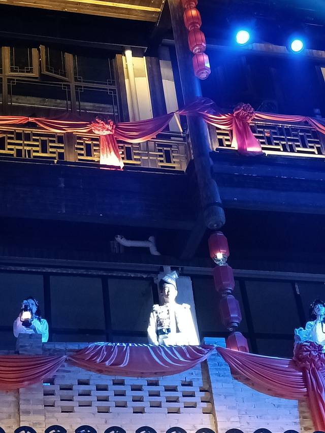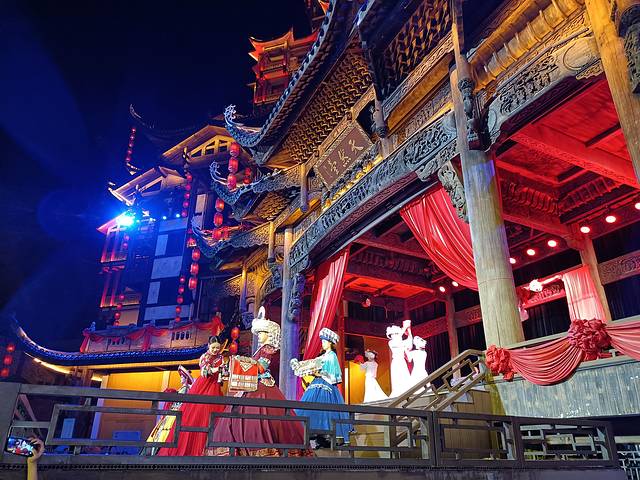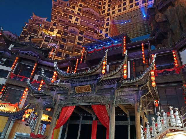 下午从黄石寨下索道回到市区,在张家界母亲河——澧水河畔看晚霞夕照,夜晚前往七十二奇楼景区观看演出,虽然开始收费了(72元),但人真的还是很多很多!