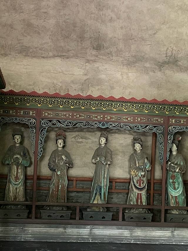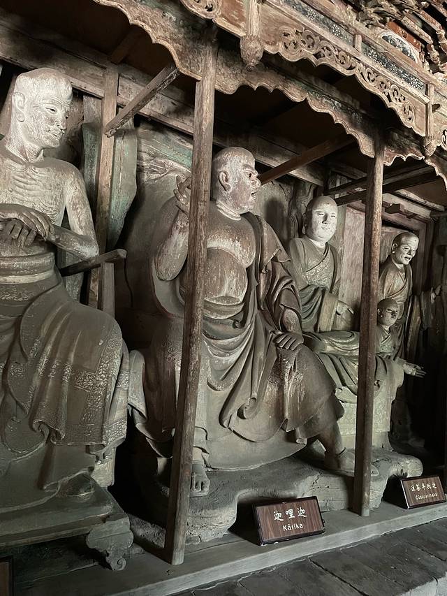 寺内建筑总体风格古朴,藏有唐槐、宋碑、明钟及古代彩塑、壁画等珍贵的财富。特别是寺中的两千余尊彩塑,数量巨大,内容丰富,包括韦驮像、渡海观音等著名彩塑作品。双林寺以其精湛的彩绘泥塑享誉中外,被称为“东方彩塑艺术宝库”,并被联合国教科文组织称之为“真正的、独一无二的珍宝”。遗憾的是因为寺内部分馆维修没有看全,包括韦驮塑像。