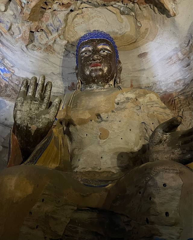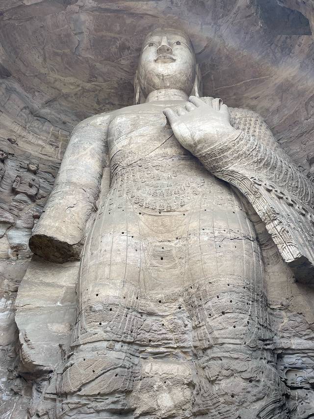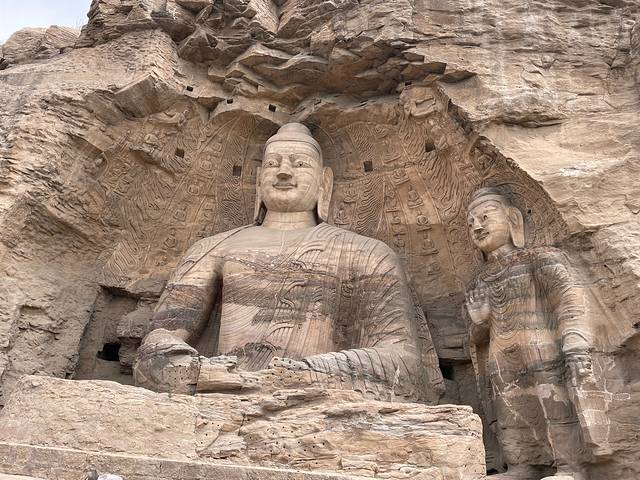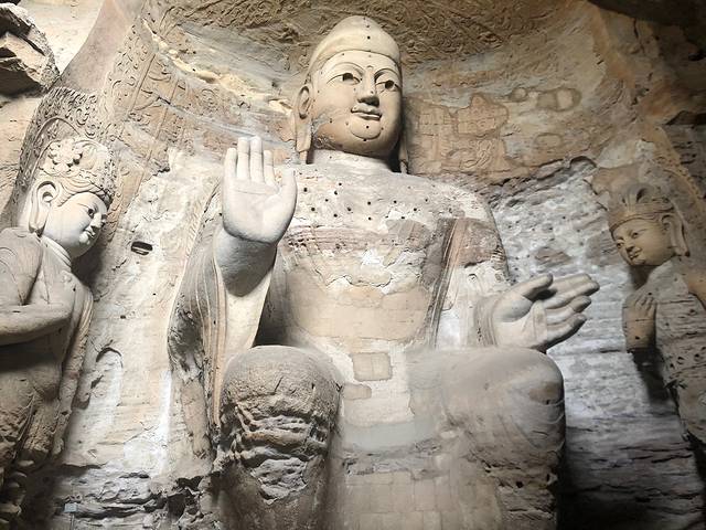 云冈石窟,位于山西省大同市西郊武州山南麓,始建于北魏时代,是当初为了供奉佛教创建的,前后一共用了64年,其中最早的是有昙曜开凿的五个窟,后来逐步开凿了200多个窟,石窟依山开凿,东西绵延1公里。现存主要洞窟45个,为中国规模最大的古代石窟群之一