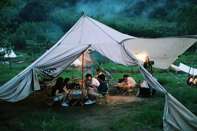 这里也是不少人的野营目的地,帐篷隐藏在青山绿水之间,看日出,看日落,看星河,围炉夜话,醒在霞光万丈里……