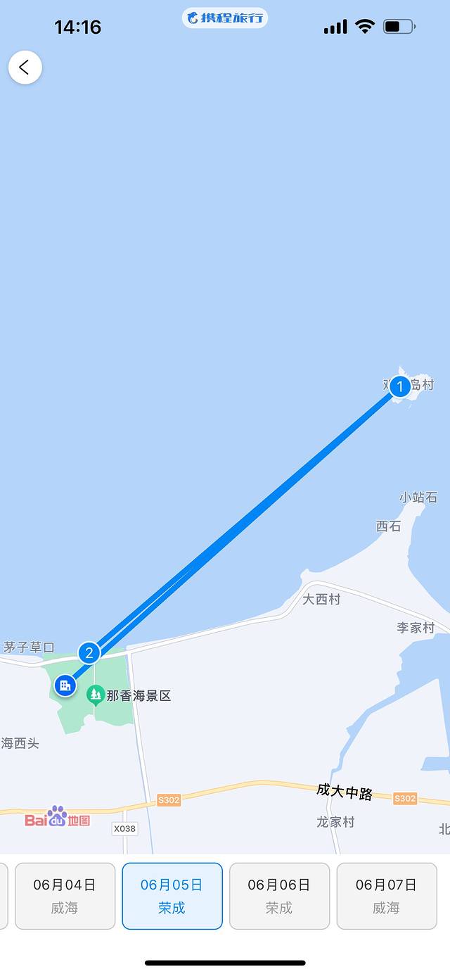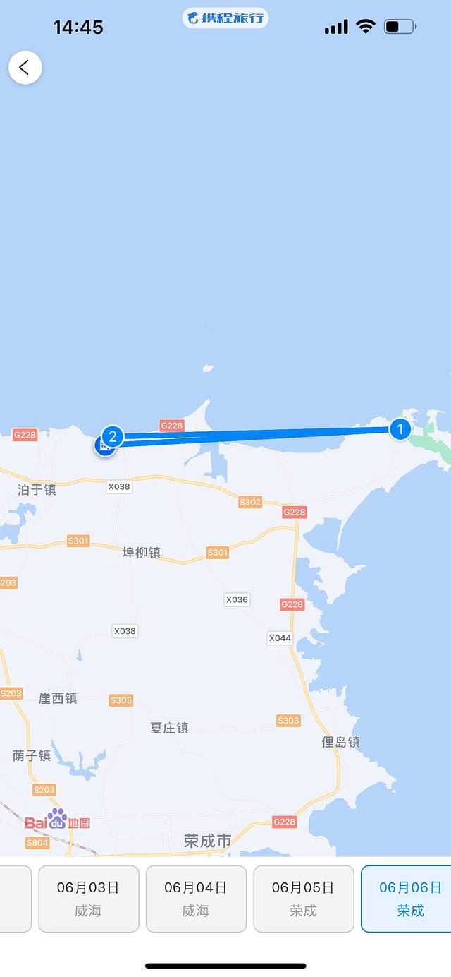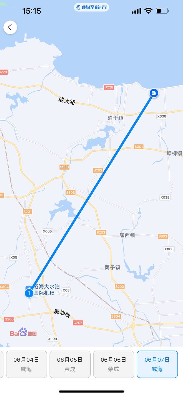 6月3日我们从天津出发乘坐11:00-12:30的飞机✈️抵达威海大水泊机场。选择火车🚄的话比较浪费时间,而且车票价格会比优惠时的机票价格略贵,但是火车站离景点和酒店会近一些,如果时间富裕并且享受自驾体验感的也可以选择自驾🚗前往。选择飞机出行最大的缺点就是机场距离酒店以及热门景点都很远,落地后需要打车🚕或者乘坐大巴车🚌前往酒店。