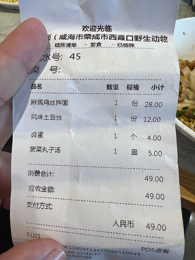 午饭是在动物园内的“五爷拌面”吃的,面条口感很硬,价位适中,面条可以免费续,不是很推荐,建议大家自己带一些吃的来。
