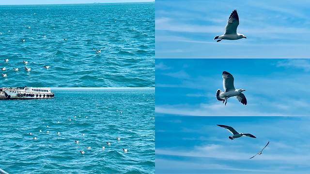 我们乘坐下午1点的船进岛,船上不分座位号,全程大概10分钟左右,全程都可以喂食海鸥,船上售卖火腿肠,10元钱5根,带签子,和景区对比的话真心不贵!海鸥真的很多,跟着船飞,在船舱外拍照一定要注意安全以及鸟屎💩!鸡鸣岛本身不大,只不过都是上坡和下坡,徒步的话稍微累一些,路线就顺着彩色楼梯向上走,从左到右环岛一圈就都看全了,没有想象中的好看,必打卡的建筑都是航拍出来的比较惊艳,悬崖咖啡☕️厅卫生真的很差。时间不富裕的话,看看网上的鸡鸣岛视频就足够了!一圈走下来连拍照我们只花了不到两个小时,就坐船返程了。