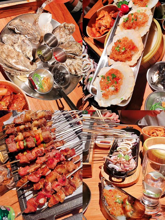 晚饭我们是在“不二虎海鲜烧烤工厂(韩乐坊店)”吃的,一直觉得威海的烧烤可能不会很好吃,但是真的惊艳我了!生蚝🦪非常的肥,羊肉串🐑真的很大块,和价格成正比,菠萝🍍和牛肉搭配真的绝绝子了!鱿鱼🦑和夏威夷扇贝超级新鲜,啤酒🍻也都是精酿很醇厚!良心推荐哦!