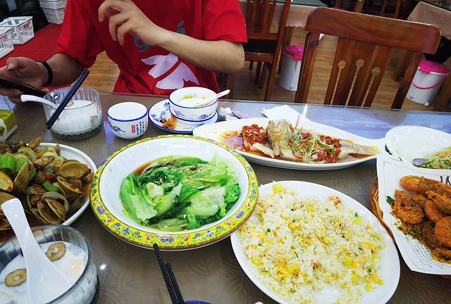 三亚的第一顿饭是在玉海国际出门后的美食街,街上很多拉客的,以及出门就有人要带你,这种都不要轻易相信,大概率是坑,美食街尽头就是椰梦长廊,离海很近,这顿饭点的套餐花费150,两个人吃的很饱很满意。