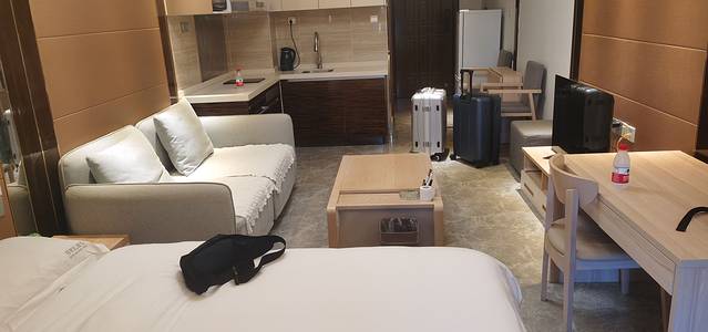 我们第一晚是住的机酒套餐的酒店,第二天醒来就定了玉海国际酒店,现在淡季才150一间标准房,房子设施齐全,有阳台,带泳池,酒店整体很大,出门五分钟就是海,性价比极高。