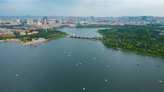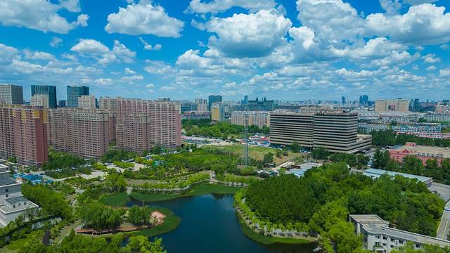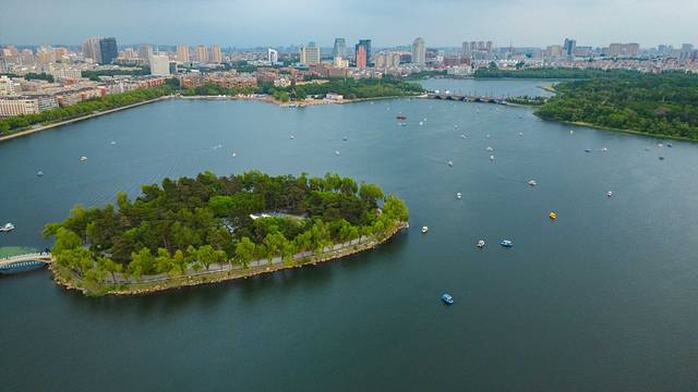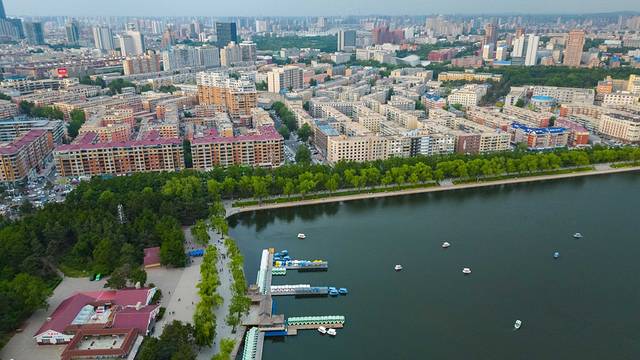 在无人机的视角下,南湖公园尽收眼底。高楼林立下的南湖公园,风景秀丽,美不胜收。你很难想象这里是 东北 ,仿佛一秒穿越到了 江南 园林。