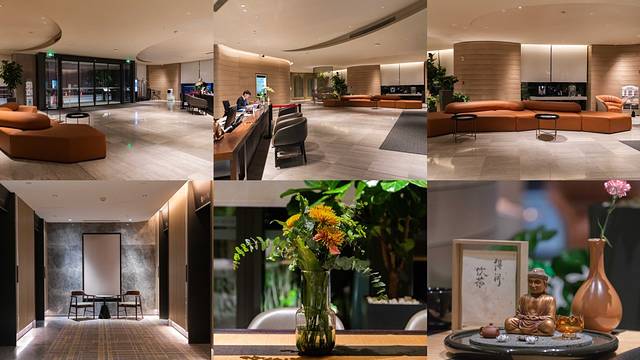 酒店大堂温馨宽敞,24小时的前台接待,有免费的现磨的咖啡,饮料以及小食等提供。另外,客人点餐还有机器人送餐服务等,相当贴心。往里走还有茶台,配备了进口茶具,随时可以坐下来享受一杯茶。