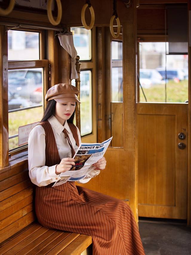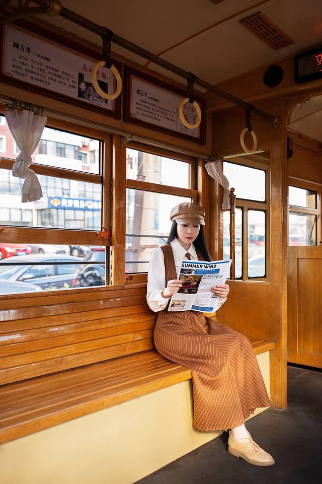 仅剩一辆的绿色仿古的“ 长春 号”真的有点难等,但也真的太复古了。穿一身复古裙子,坐在电车内,好像瞬间回到了过去的岁月。
