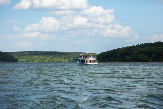 乘坐观光车环湖游览,风景优美,林海莽莽,湖面开阔,春夏秋冬景色各异。特别是夏天,这里可是天然的避暑胜地!