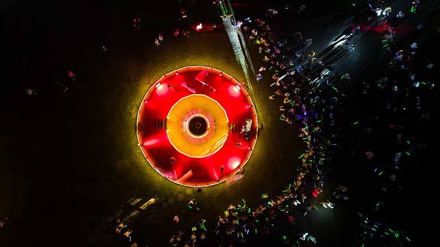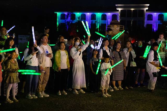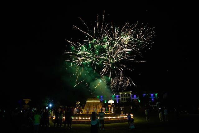 演出的最后是令人期待的烟花秀。仰望天空,色彩缤纷的烟花就象多情的流星雨淅淅沥沥,也如萤火虫般在夜空中偏偏起舞,唯美至极。