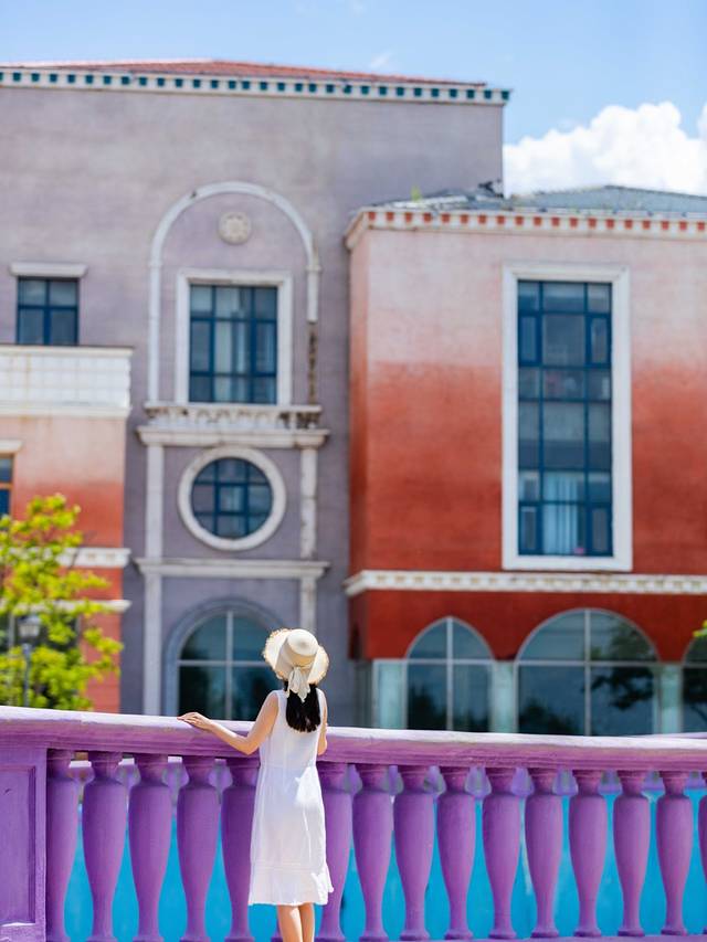 莲花岛的民国风情一条街是最火打卡地,还原了民国时期的风格建筑,还可以换上服装拍照,瞬间有了穿越的感觉。