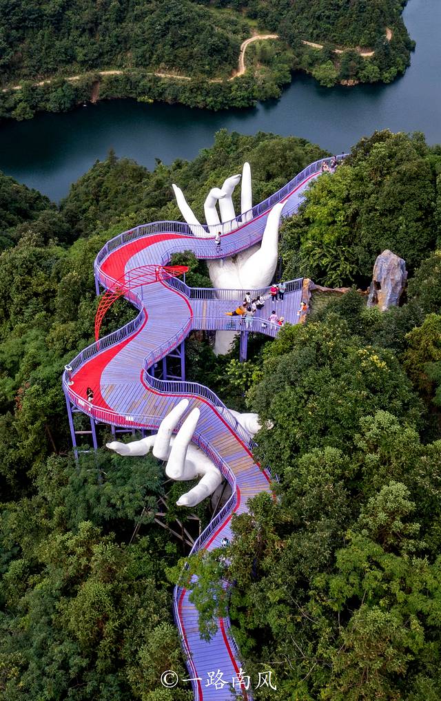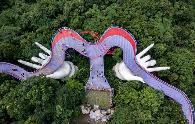 玉手纤纤,托住“长龙”,带来极大的视觉冲击力,同时又呈现出温馨感,走在“天桥”上有种被呵护的感觉。