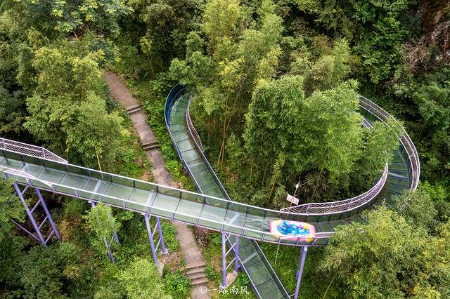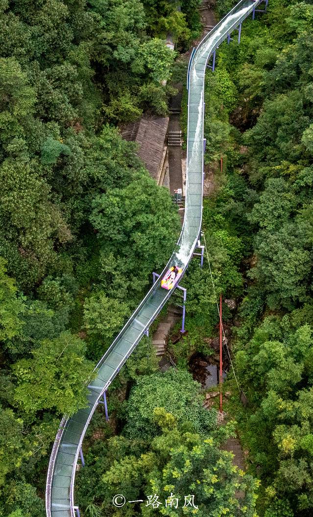 这条由WRCA纪录认证的世界最长的通体玻璃漂流全长3.8公里,落差达到280米,相当于从70多层的高楼俯冲而下。