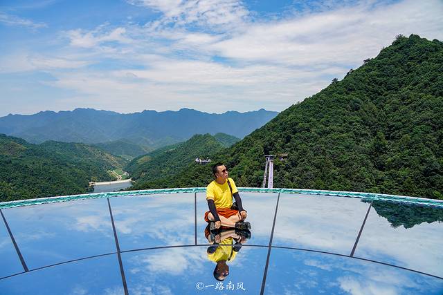 玻璃眺台的顶层为圆形的天空之镜,将天子地秀丽山色和蓝天白云映照在玻璃之上,在这里拍照特别出片,是天子地的必打卡景点之一。