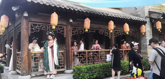 这里是典型的网红打卡点,周边店铺全是租汉服的,感觉比西安都多。如果要租汉服最好早点来,可选的衣服也比较多,晚上10点还衣服。还有跟拍,拉着道具小车车一路相随,哈哈😊