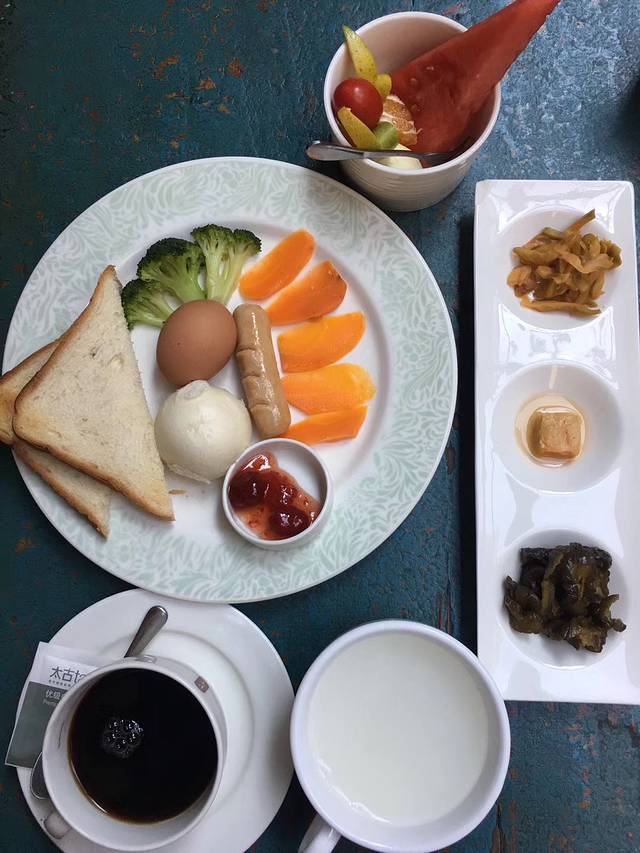 记得那天很热,走了两个小时,已经热得不行,只想回住处吹空调😓。酒店小伙子热情地招待我们早饭,有粥有咖啡有水果有肉,统统吃掉😂