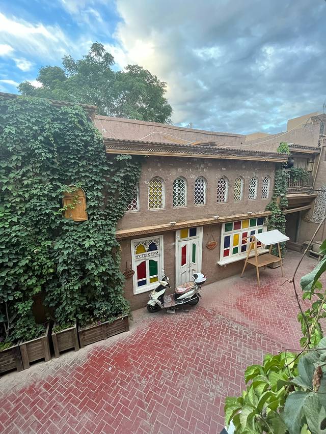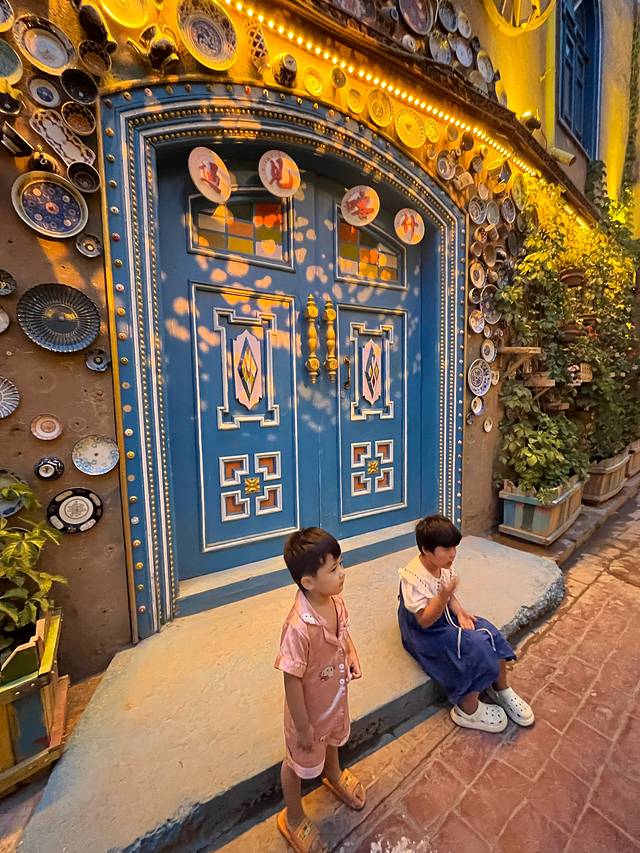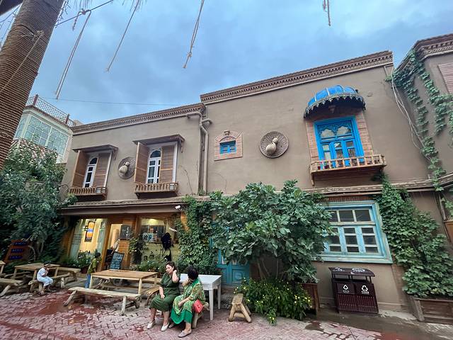 下午到了伊宁,傍晚去逛了六星街,六星街有的建筑采用大片蓝色,拍照容易出彩。