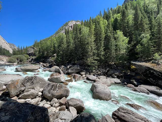 可可托海不是海,景区里有幽深的峡谷、清澈透明的河流、陡峭秀丽的山峰,环境非常优美。