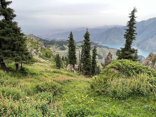 前一天在去哪儿网订天山天池一日游,乌鲁木齐发团,155元一位。我们遇到个好导游,做事细心,有条理,没有任何强迫消费(好的导游可使快乐翻倍),沿途有讲解,和我们讲了部分新疆历史,她是个热爱新疆的人。天山天池有自费项目,邮船游湖,索道(110元一位)上山。我们选择索道上山,索道后还要要走很长栈道,需要一定体力(建议上山),路边风景很值得!