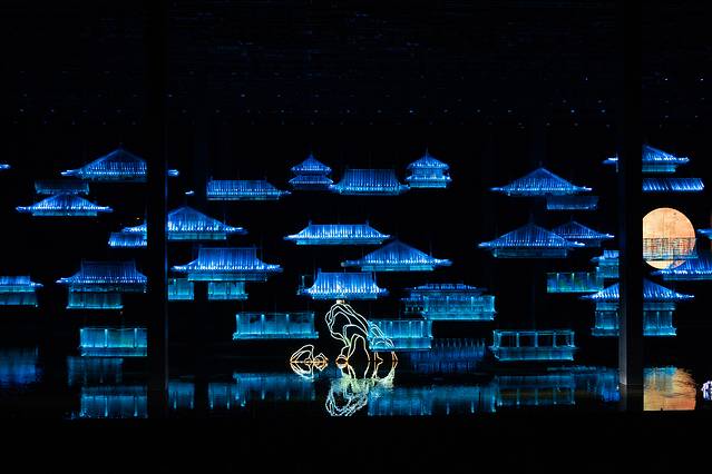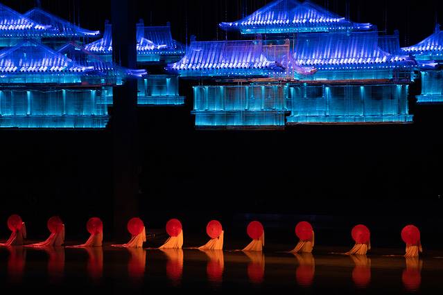 《归来 三峡 》位于 奉节 白帝城景区内,整个舞台和观众席都漂浮在长江之上,以天地为舞台,以诗词为核心;整场演出就是光、影、诗的完美呈现,这真的是一场非同寻常的视觉盛宴。