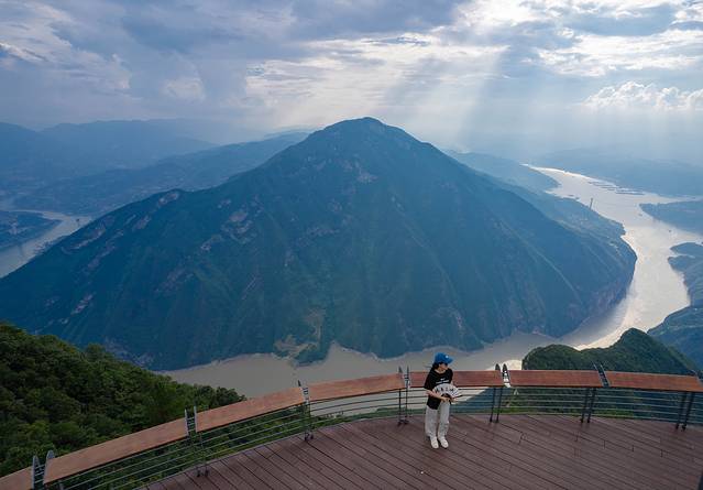 这次我们乘坐 三峡 之巅索道上山,走过夔乐桥,沿着游览栈道到达 三峡 之巅观景台。