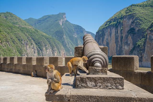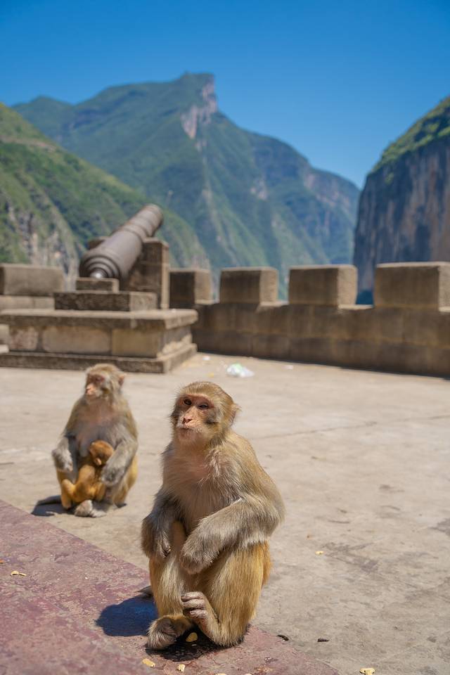 这次我们选择赤甲6号深度游瞿塘峡,从夔门印象出发,沿江而上,观两岸之景,然后再下船攀登一小段山路,到达赤甲楼古炮台,赤甲楼倚山而建,现如今已成猕猴的乐园,猴群在城墙以及古炮台来回踱步、上蹿下跳, 背后就是 三峡 之巅,这样的景观实在是震撼人心。