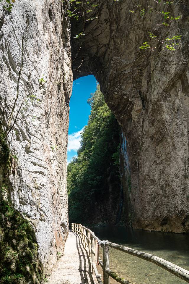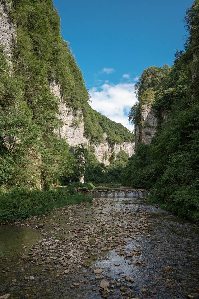 徒步龙桥河所见最神奇的还是龙桥,龙桥高60多米,就像本是墙壁一样的石峰,突然被水冲开了一个洞口,如此的巧夺天工,不得不让人惊叹大自然的鬼斧神工。