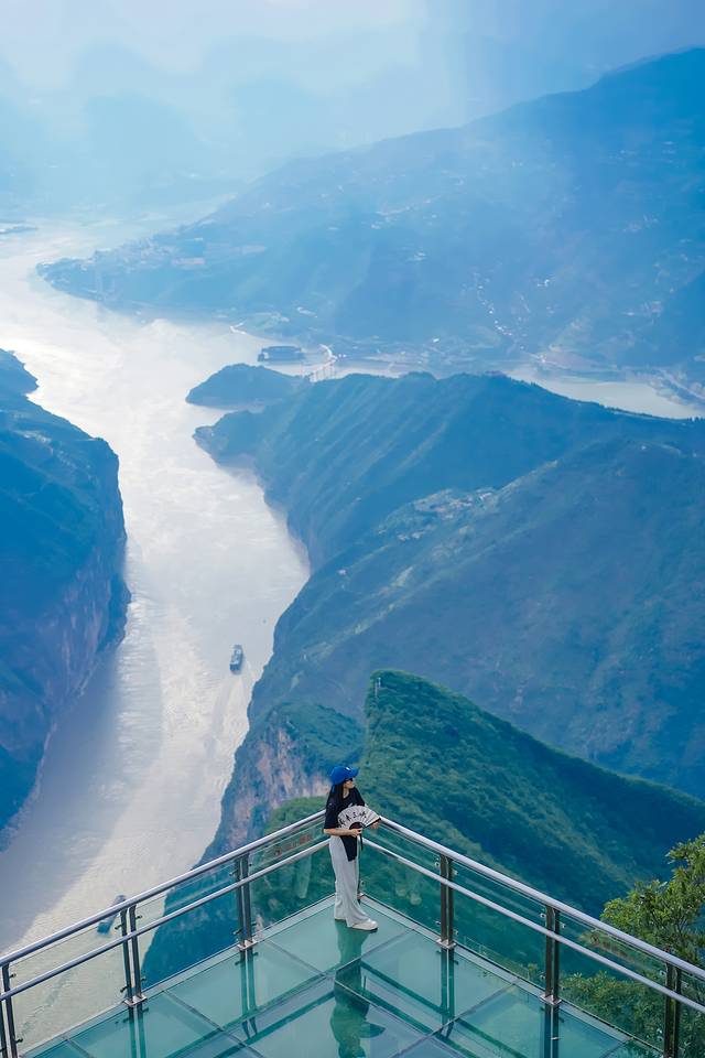 三峡 之巅的观景台最为震撼人心,位于悬崖之上,当踏上玻璃栈道之时:8公里的瞿塘峡、千年白帝城尽收眼底,真正的感受“会当凌绝顶,一览众山小”的意境。