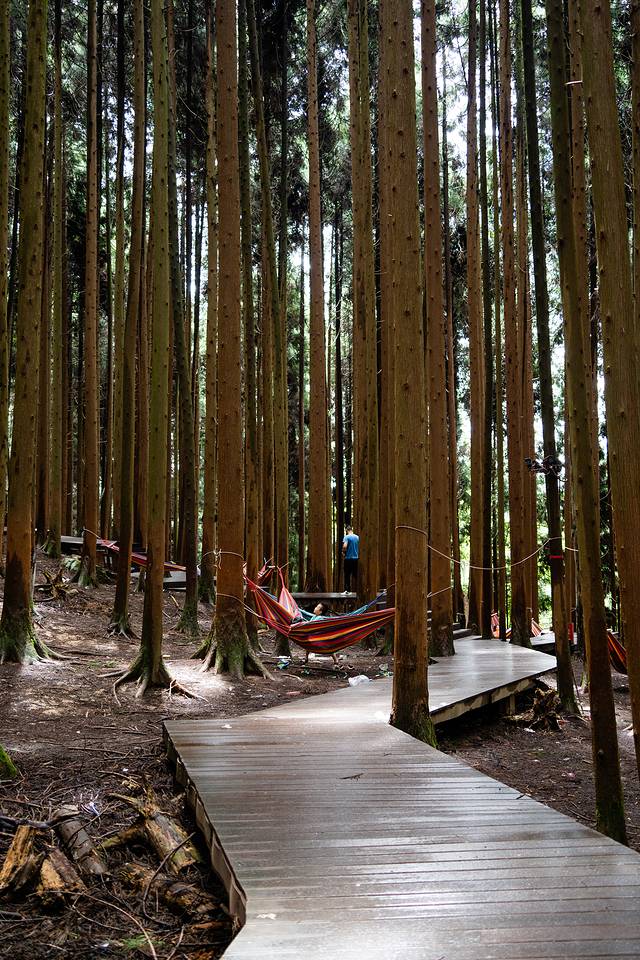 走进大坪森林公园,可见许多游客在此搭吊床、搭帐篷,而且森林内超凉快,看着五颜六色的吊床倒是给森林中的树木增添了色彩,赏着葱郁的森林、听着清脆的蝉鸣,能够在此惬意的躺上大半天。