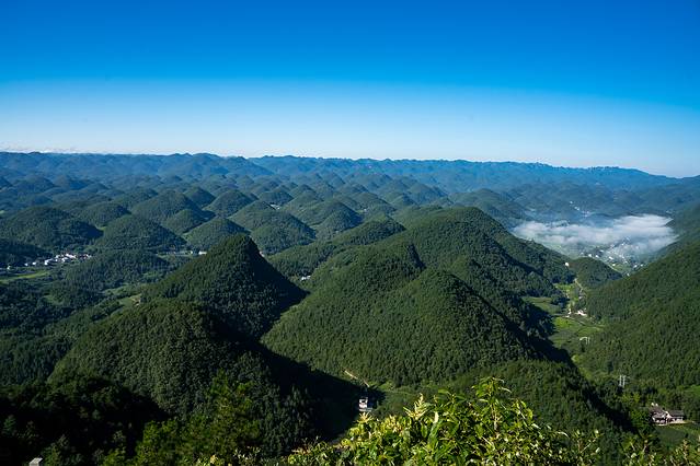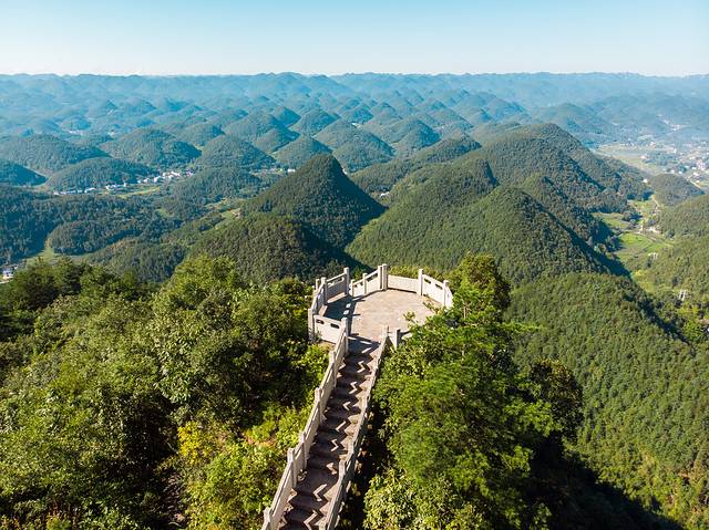 从未想过在 重庆 能见到如此奇特的地貌,金 凤山 大大小小的石峰约有上千个,从观景台往下望去,这些山峰像是从地面上长出的馒头,因此又被当地居民称为群乳峰。