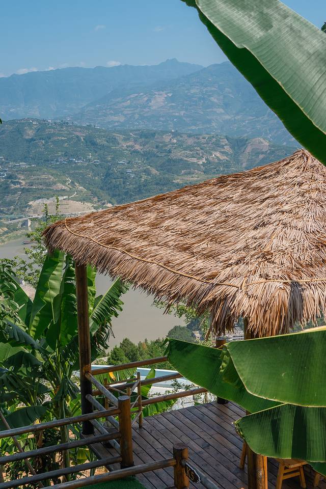 瞿塘漫屋的位置绝佳,就位于瞿塘峡北岸的夔门半山腰,是一个拥有两层楼的民宿,一楼吃饭,二楼为客房,顶楼是观景平台,远处是夔门,周围山坡环绕的全是果园。