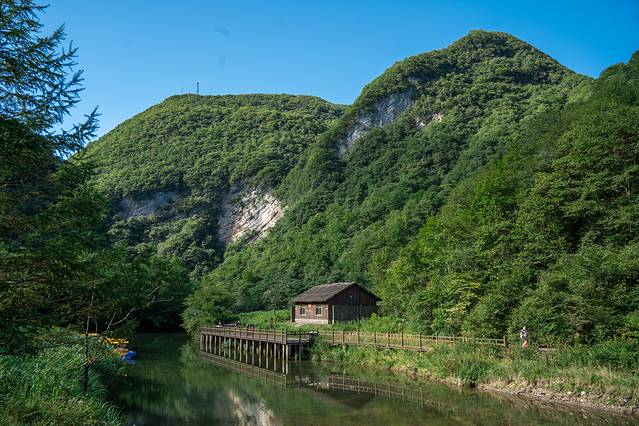 龙桥河景区保存的极为原生态,总长3.3公里,河水九曲连环,需要徒步走完全程,只需沿着景观步道前行,眼前是奇特的地质景观,周边是原生态的花草树木,虽然是徒步,但是却一点都不累,全程都是平路而行,时间充裕可在此玩玩水,吹吹风,享受这夏日里难得的清凉,感受这清爽夏日的惬意。