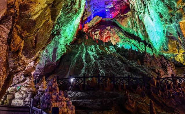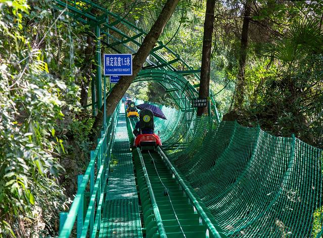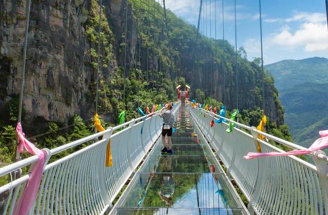 前山一入眼便是玻璃桥,从玻璃桥玩过去,看着远山的风景,在玻璃桥上看着那种高差带来的心理的刺激,还有点令人紧张,从玻璃桥过去坐玻璃滑道滑下去便是情人桥,在情人桥上游玩打卡,去猿王洞里看溶洞景观带来的震撼,感慨大自然的神奇之处,享受溶洞里的清凉。