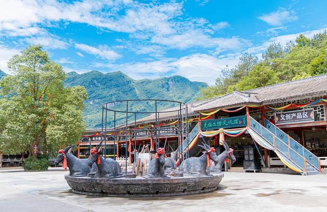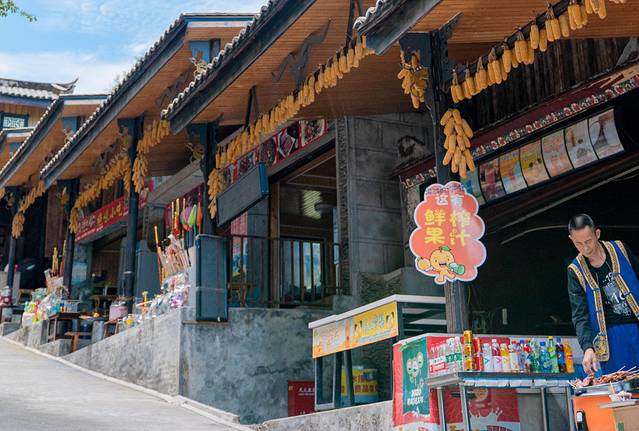 小吃街有很多的特色小吃,北川这边的腊肉香肠都很值得体验,还能够休息再继续出发,小吃街算是前山和后山景点的分叉口,我们到的这个时间已经差不多快中午了,我们也在小吃街这里简单的解决了小吃,便直接前去前山景点游玩。