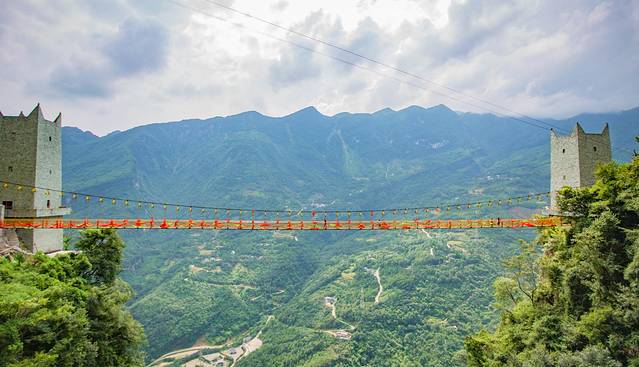 下缆车后便是半山腰的位置,面前只看见一个大广场,有着一个大大的篝火堆,两旁有着一些羌族的建筑物,小吃店这些,景点的话还要往山上走才能到,我们打卡一下便继续往山上走去了,坐高空滑道往上走,看着远山的风景,悠闲的享受几分钟的时光,上去便到达一个小吃街。
