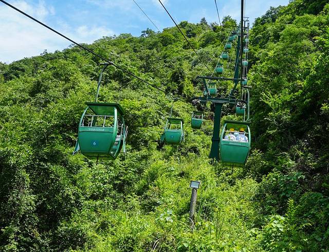 游玩之后坐洞口索道返回到小吃街去乘坐到后山的索道去往后山,在缆车上看着山野风景,感受自然的美好,然后便是山顶上了。