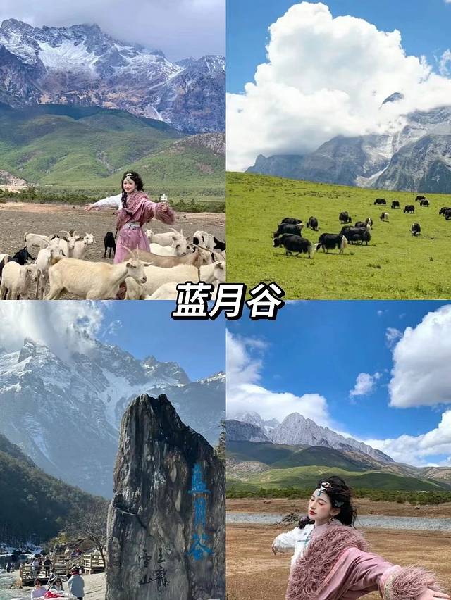早上🚌出发玉龙雪山,在雪山之巅上感受一阵阵风,下山后的🗾蓝月谷也是超级美!📸随便摆拍都很出片,日照金山不要错过,听说看到日照金山的人会好运连连✨!