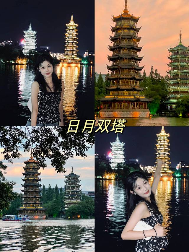 下午我们去了象鼻山,象鼻山就是这个很像大象的鼻子在河边喝水🐘怪不得大家都称赞桂林的山水呢!最后去了日月双塔,晚上的时候灯亮了拍照就会非常的出片呀📷嘎嘎漂亮