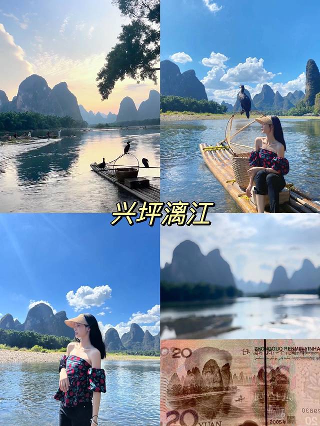 之后还去了二十元人民币的背景打卡地,漓江边的山水非常的有特色呀,就跟人民币上的背景一模一样🥰晚上我们还去了阳朔西街~跟好朋友走在街上走走,就会感觉很幸福😯