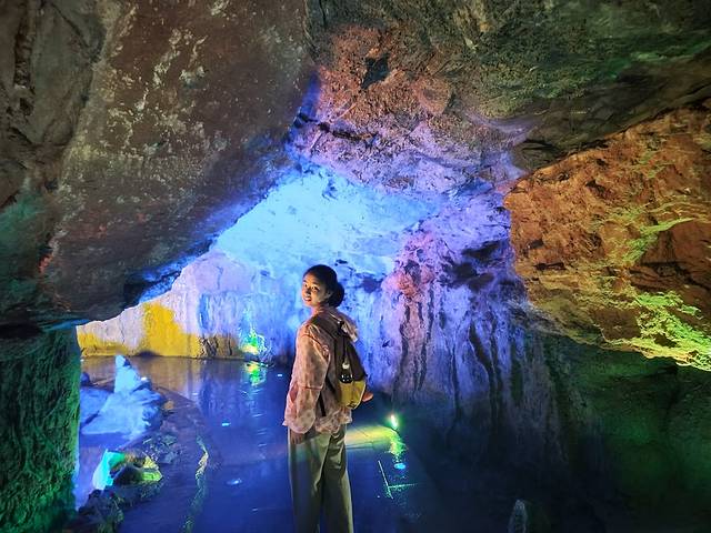 上午8.20高铁杭州东出发,9.10到达金华站,直接打车去双龙洞,15r,提前买好门票加景交车一大一小177,后来发现景交车太值了,到达景区,先坐车到双龙洞从冰壶洞出来。躺着进入,真如书本中所说,不一样的体验,天公不作美,出来后下暴雨了,还好出门前看了气象带了伞,排队坐上景交车去桃源洞,因为下雨,我们就不打算全部走完,直接去了感兴趣的仙瀑洞,属于探险洞,里面有接近90度的台阶,加上投影音效,感觉很不错,很值得,让我发现孩子胆子和体力都有提升