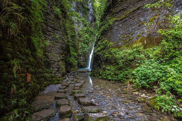 龙桥河的“源头”位于锁龙柱的悬崖之下,形成一条清澈见底的小河,它蜿蜒在崇山峻岭之中,滋养着大地万物,造就出勃勃生机,犹如一条丝带将美人瀑、龙桥、闺女瀑等美景穿起,然后进入云龙洞中不知所踪。
