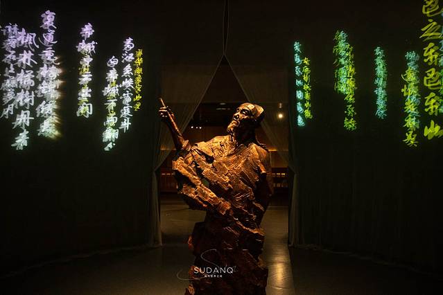 但最难忘的,还是对奉节长达2000多年的诗词文化的再现——二楼展厅内,一首首由杜甫、李白、陈子昂等曾在奉节寓居、游历时所创作的诗词歌赋都被投射在纱布幕帘上,配合声光电等多媒体手段,让人身临其境,古人之心境油然而生。