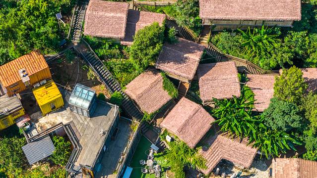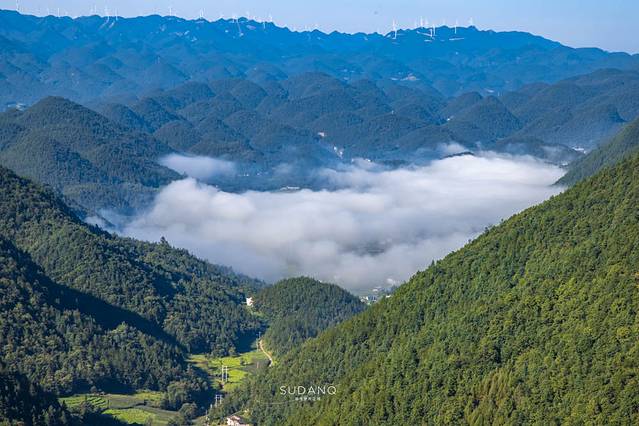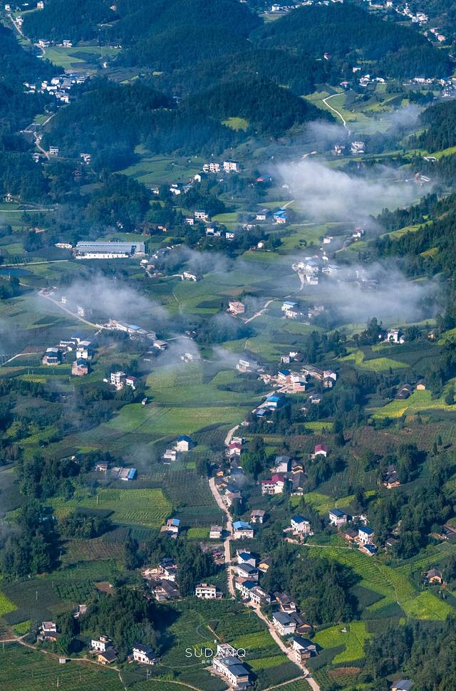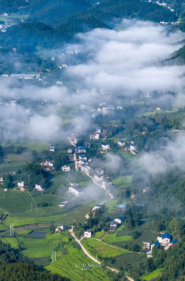 掩映在群峰之间的村落在云海的笼罩下,犹如世外桃源。