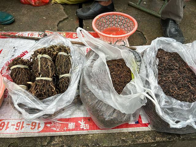 烟雨方塘的烟火气,各种山珍野味,我是穷人吃不起:一小袋鱼干要一张红票票;我还是买根油条压压惊:味道👍